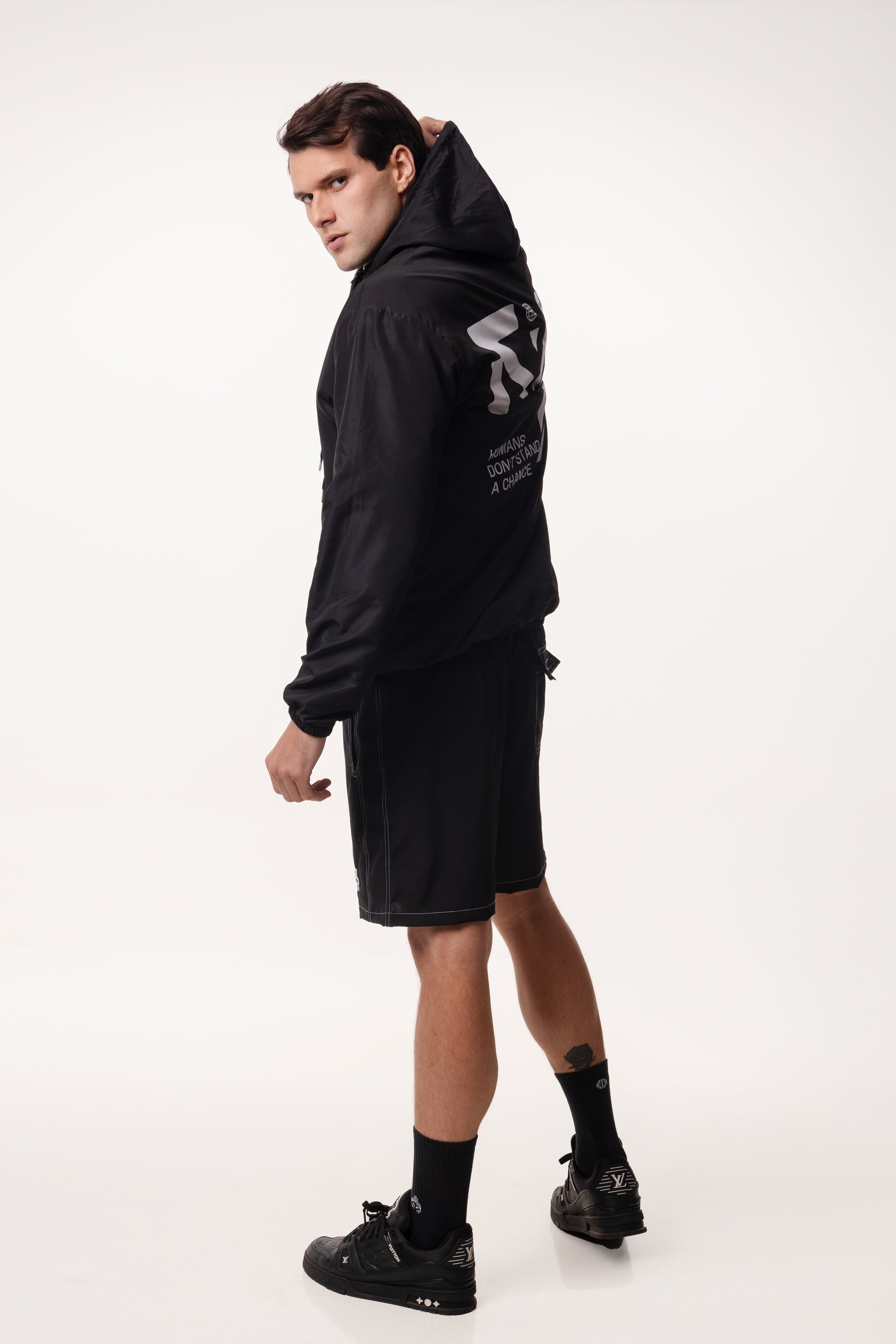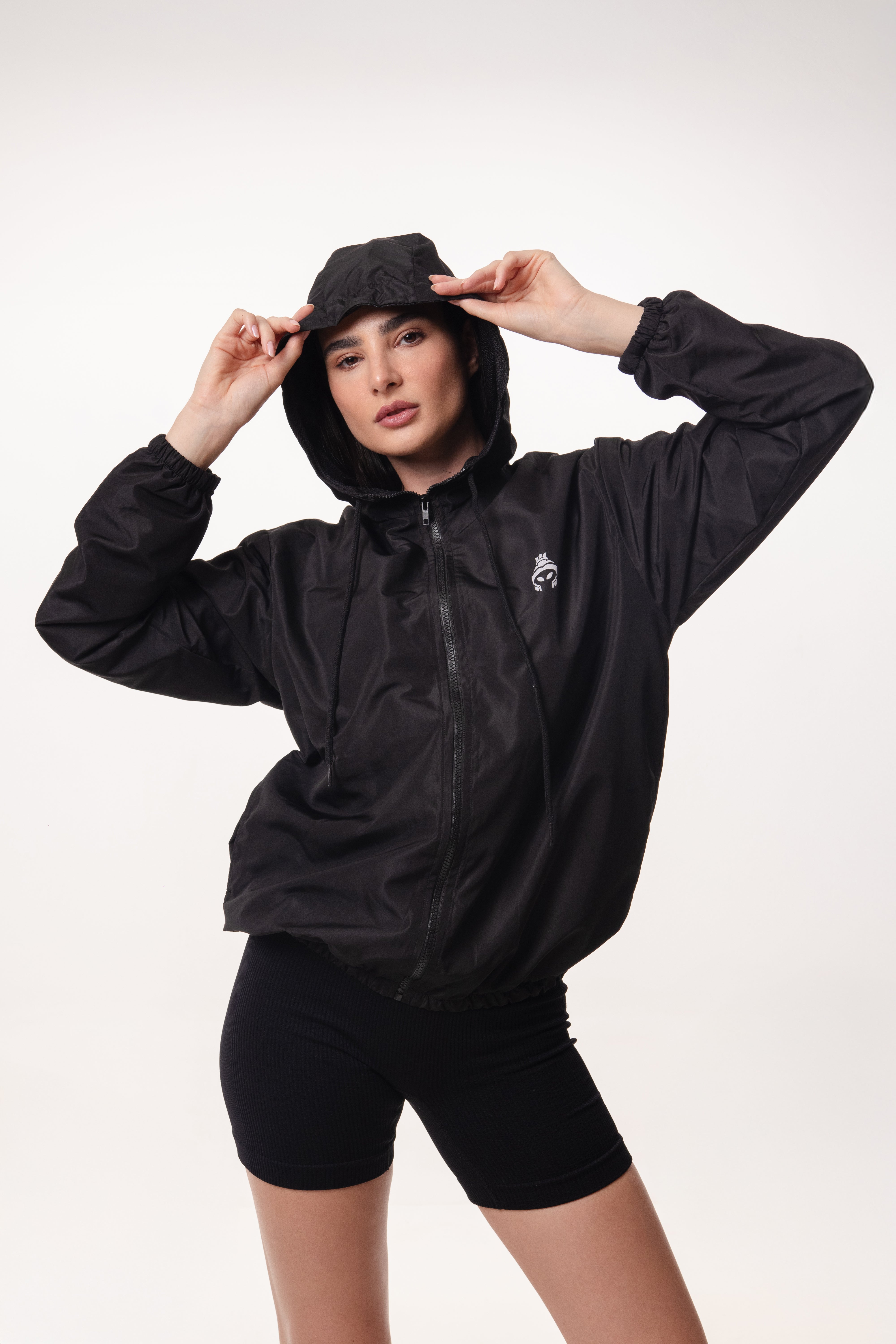 Jaqueta corta-vento unissex que traduz a essência do streetwear contemporâneo. Arte exclusiva "HUMANS" nas costas e logo frontal em silk screen aplicados em branco. Confeccionada em poliéster premium resistente na cor preta, perfeita pra qualquer ocasião.